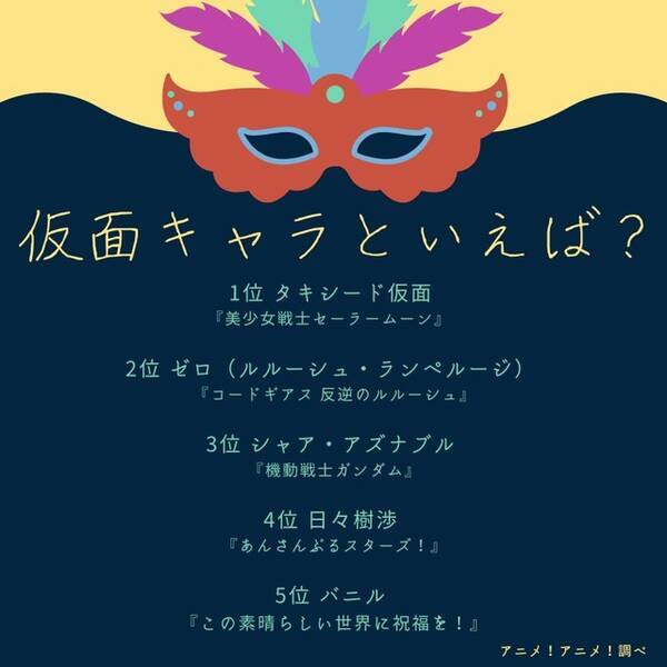 一番イケてるアニメの仮面キャラランキング シャア アズナブル 地場衛 タキシード仮面 ルルーシュ ランペルージ ゼロ 他 Gooランキング